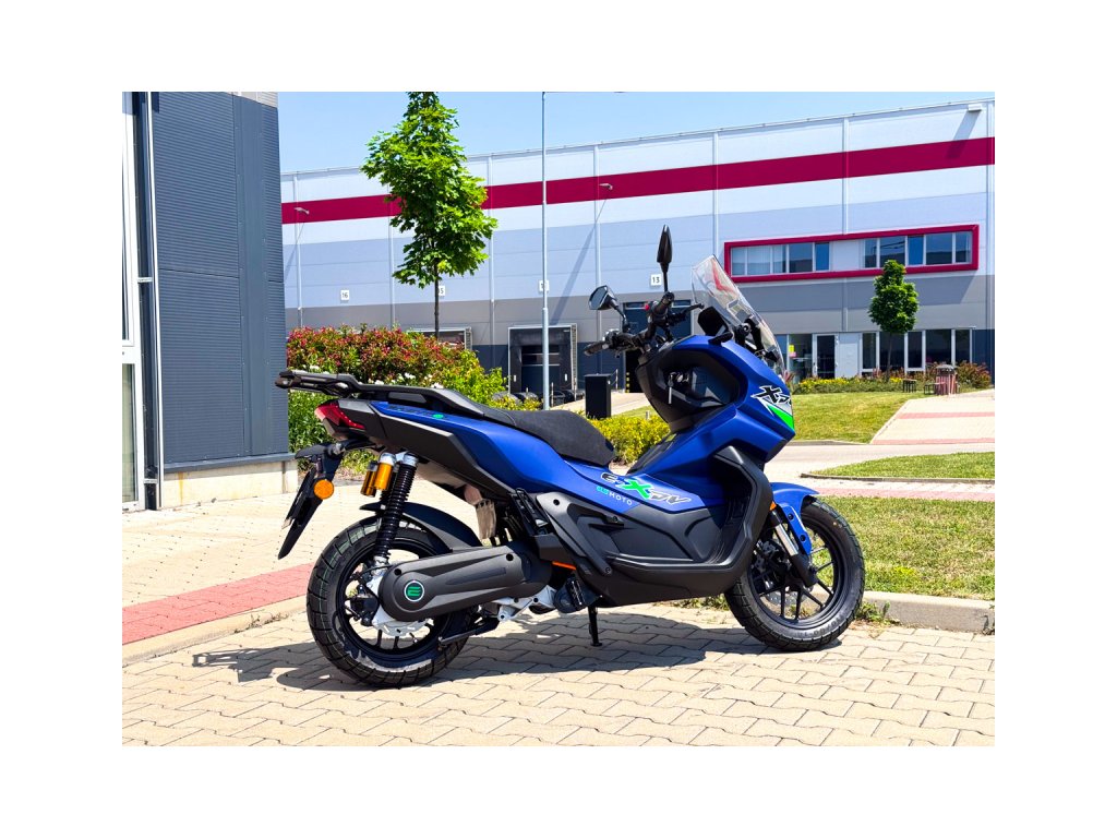 Easycool e-XDV is one of the most powerful and well-equipped electric scooters of today. It features a modern central motor with a side drive of 6000W, capable of delivering peak power of up to 15kW, making the scooter very responsive on starts and reaching speeds of up to 110 km/h. The range is provided by two removable li-on batteries from LG, which achieve a range of 180 km at an eco speed of 50 km/h. Everything is clearly displayed on a 5" screen.