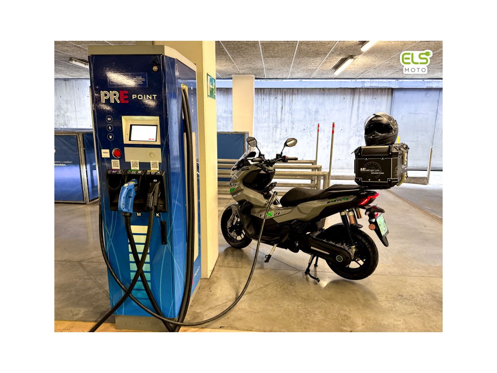 charger: Type 2 connector - can be charged from any wallbox or any public AC charging station. A portable wallbox for charging from a home socket 230V is included in the price of the scooter.